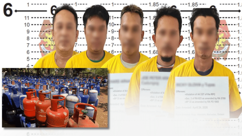 Arestado ang limang indibidwal sa isinagawang operasyon kontra ilegal na bentahan at pagre-repack ng liquefied petroleum gas (LPG) sa Mariveles, Bataan nitong Biyernes, April 24.