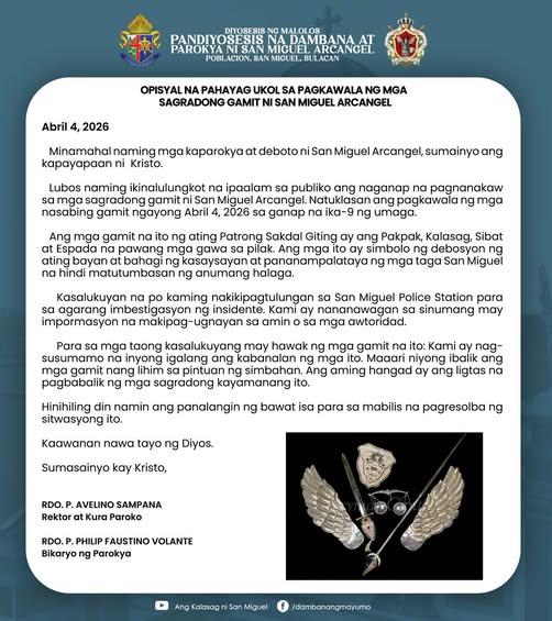 Nananawagan ngayon ang pamunuan ng parokya sa sinumang may kaalaman sa kinaroroonan ng mga gamit na makipag-ugnayan agad sa kanila.