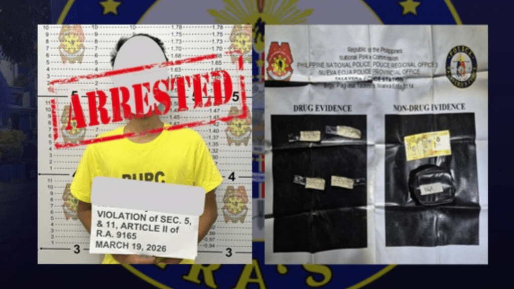 Ayon sa Talavera Municipal Police Station, nahuli ang salarin matapos magbenta ng hinihinalang shabu sa isang police poseur-buyer sa Brgy. Calipahan.